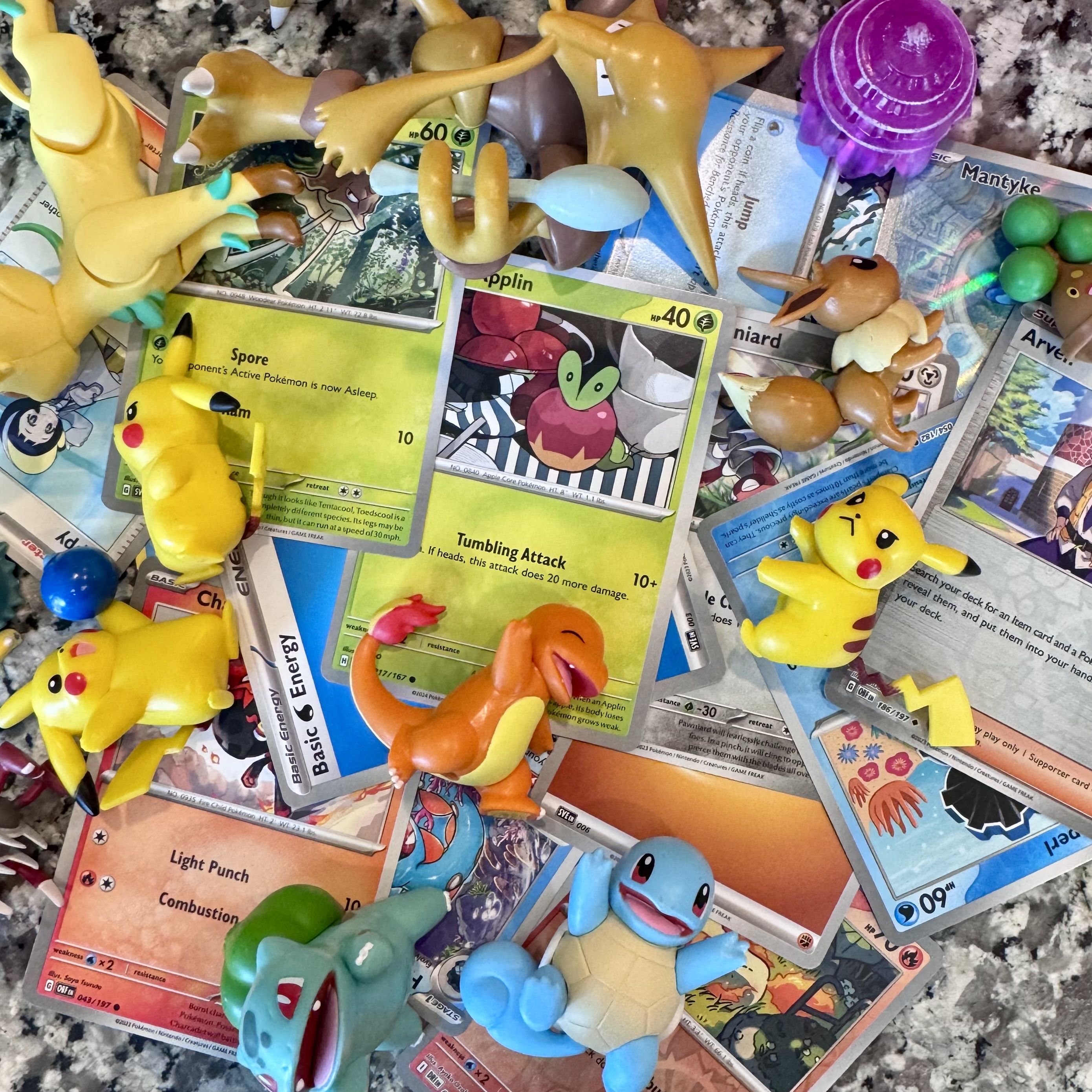 • “Professor Mom” Pokémon sessions – I can now identify evolutions, type matchups, and which cards are “cool” or “trash.” I didn’t ask for this life, but I’m in it. Recently found a trading card location where kids can pick near a deck of Pokémon cards for free, meet up with other kids to trade/play and I (mom) can sit in A/C and not be professor Pokémon mom.