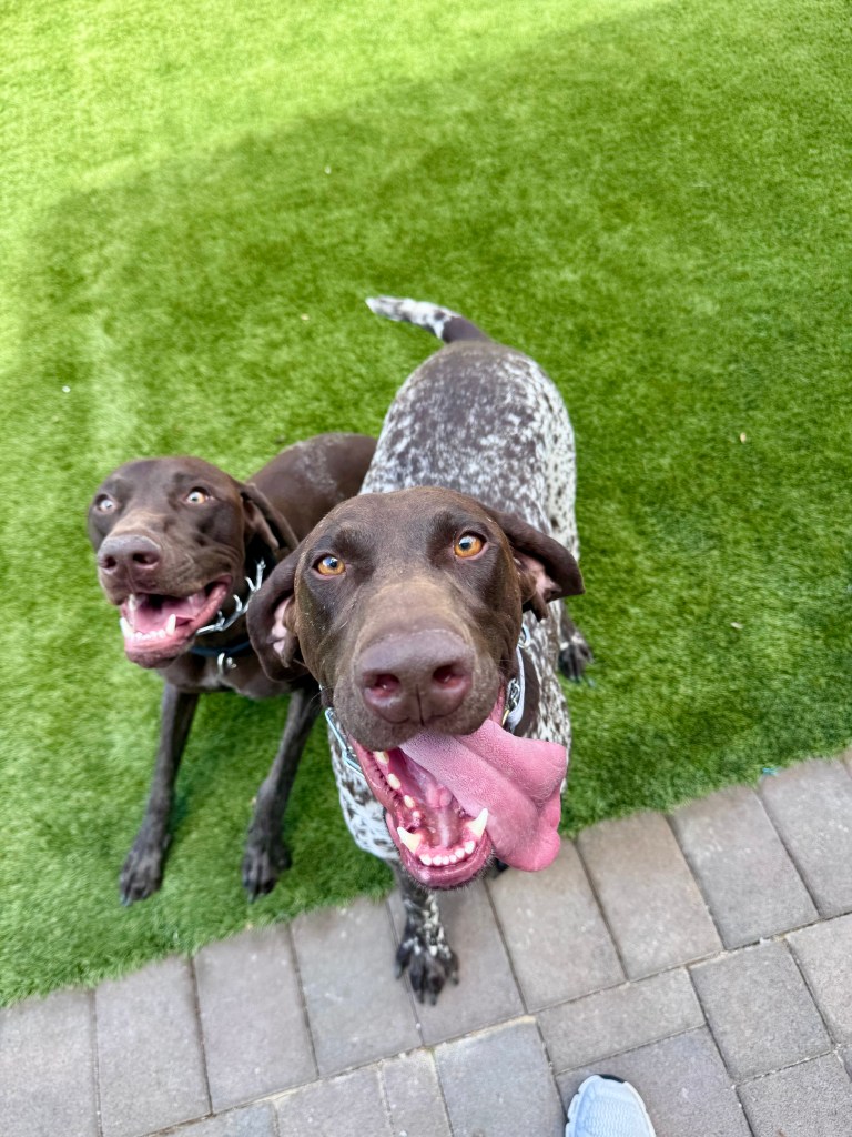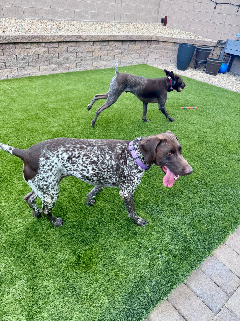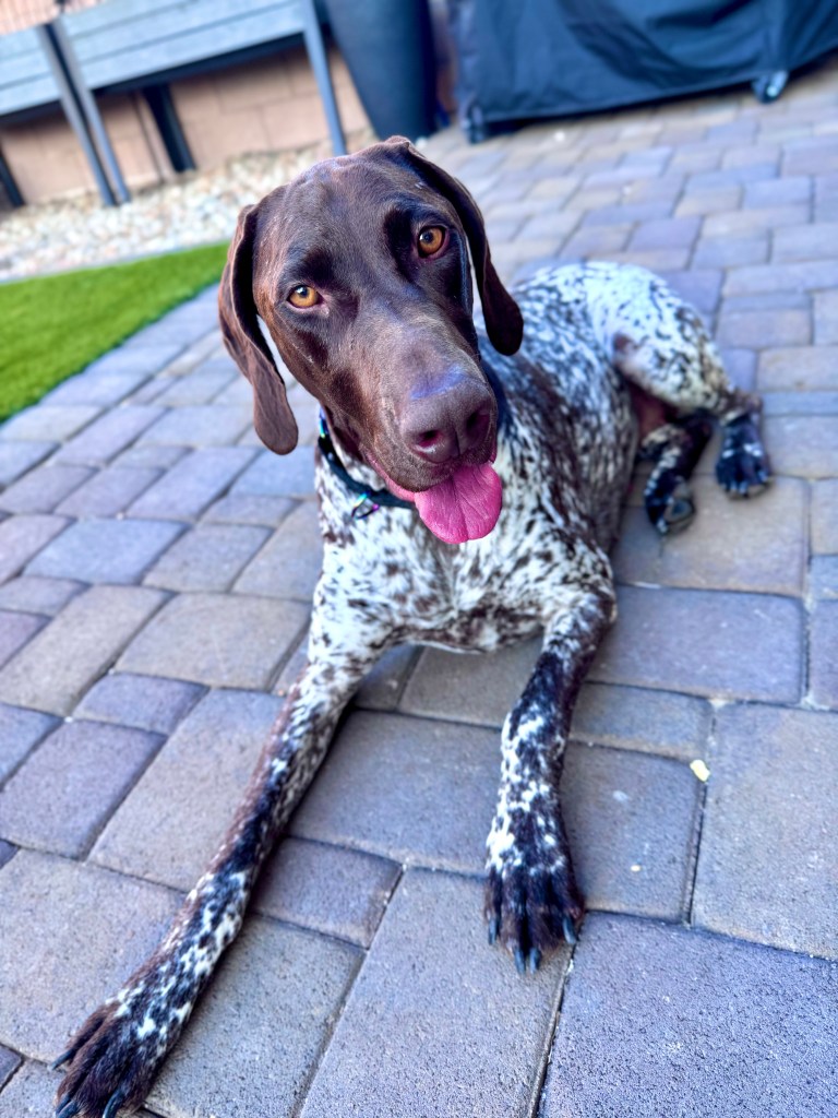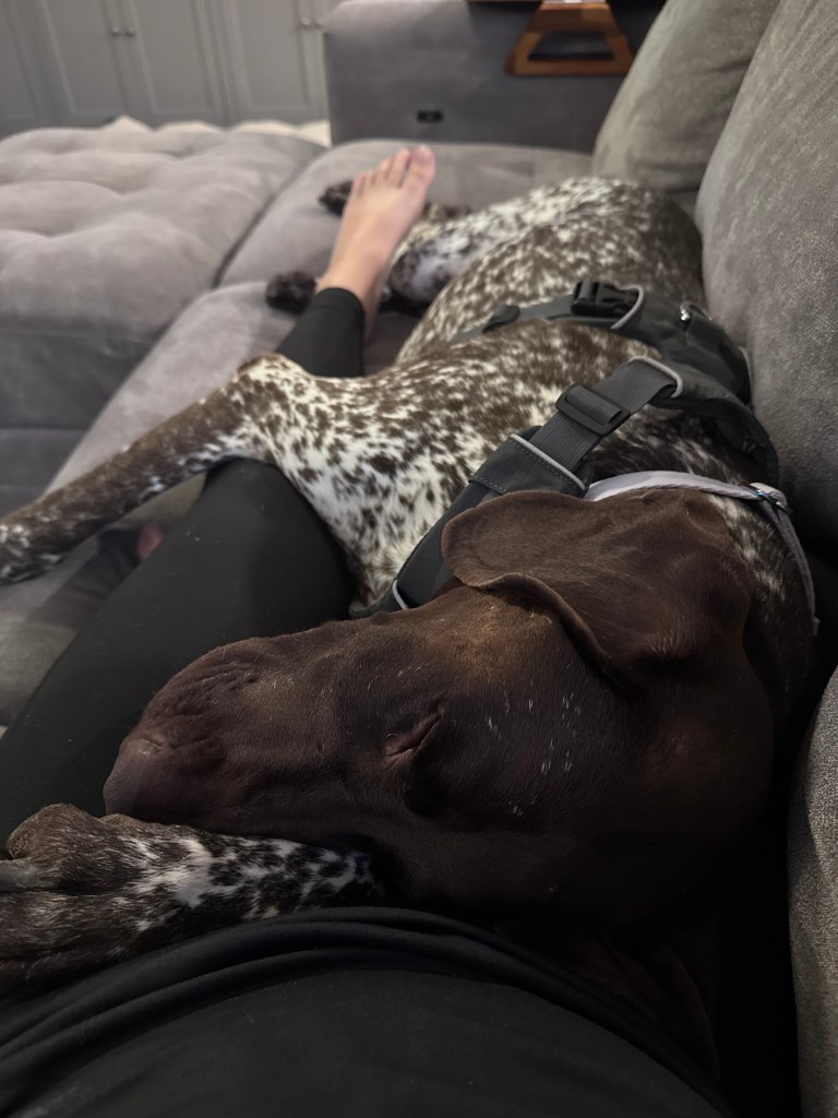 We are over the moon to welcome BamBam to our family! 💕 She’s a 3-year-old rescue German Shorthaired Pointer, a gorgeous 72 lbs of love, with the gentlest soul. We think she may be hard of hearing, but that only makes her even more special.