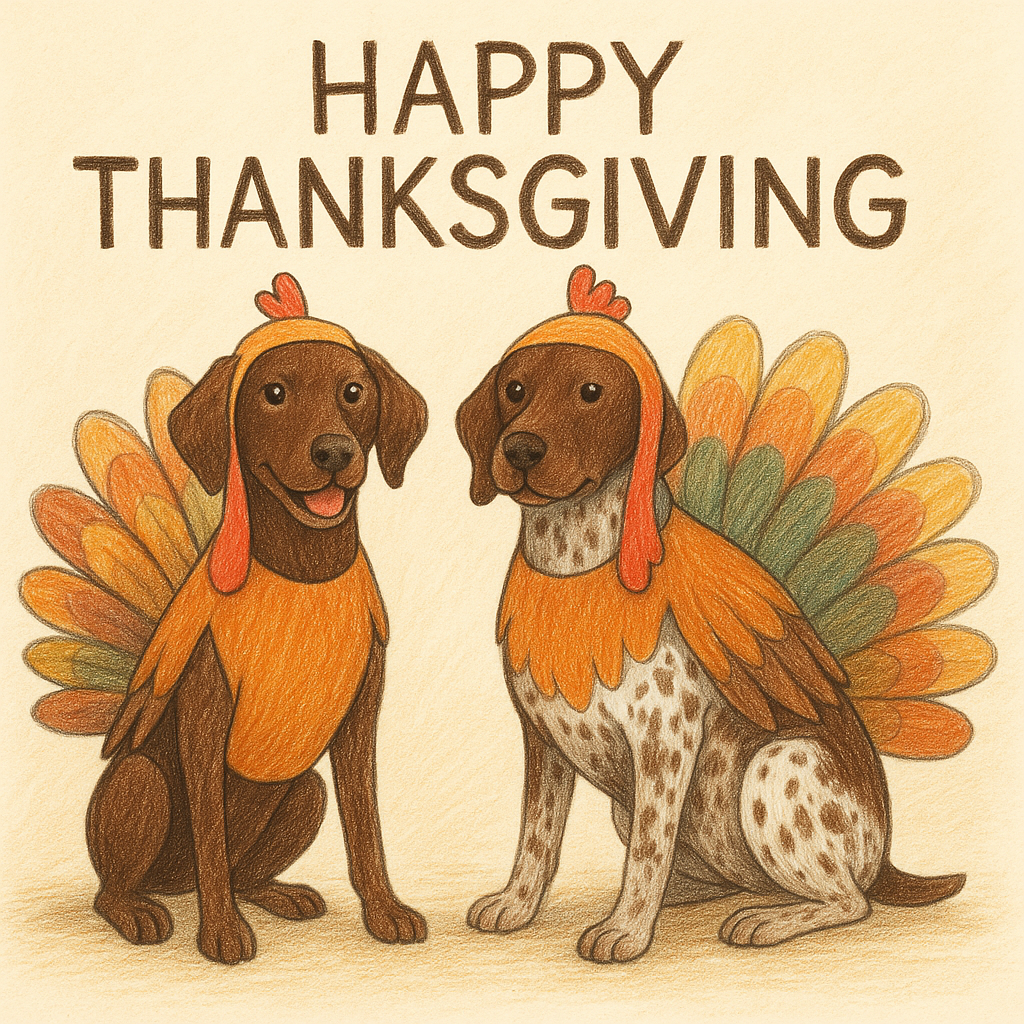 Happy Thanksgiving from your confetti-covered canine duo!